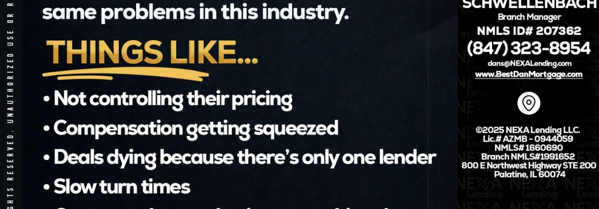 Hi, my name is Dan Schwellenbach. I’m a Loan Officer with NEXA Lending LLC., offering personalized mortgage solutions, fast customized quotes, great rates and service with integrity.