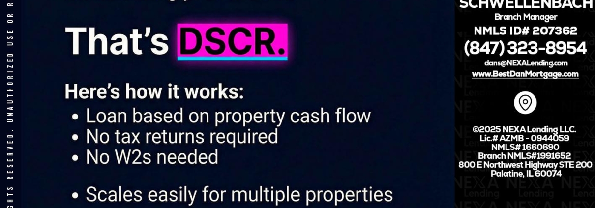 Hi, my name is Dan Schwellenbach. I’m a Loan Officer with NEXA Lending LLC., offering personalized mortgage solutions, fast customized quotes, great rates and service with integrity.