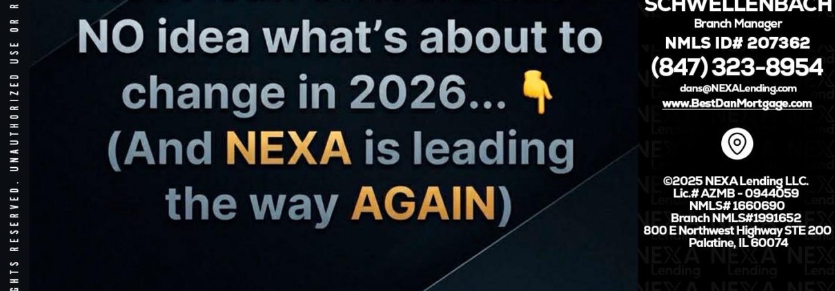 Hi, my name is Dan Schwellenbach. I’m a Loan Officer with NEXA Lending LLC., offering personalized mortgage solutions, fast customized quotes, great rates and service with integrity.