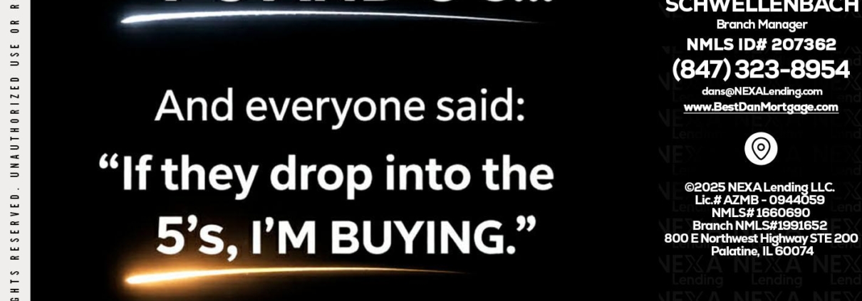 Hi, my name is Dan Schwellenbach. I’m a Loan Officer with NEXA Lending LLC., offering personalized mortgage solutions, fast customized quotes, great rates and service with integrity.